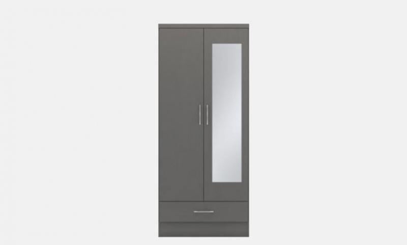Nevada mirrored 2 door 1 drawer wardrobe